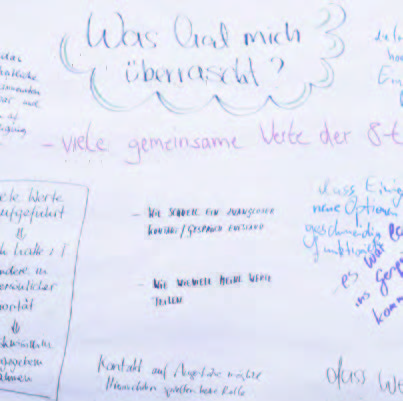 Schon in diesem ersten Schritt wurde deutlich, dass bei den Menschen unterschiedliche Bilder im Kopf auftauchen, wenn sie Werte wie „Gleichberechtigung“ oder „Schönheit“ hören. Geht es bei Gleichberechtigung um die Emanzipation von Mann und Frau – oder um Generationengerechtigkeit? Sind mit Schönheit Äußerlichkeiten gemeint oder das Schöne im Leben, Blumen im Garten oder Kunstwerke, die Mut und Hoffnung geben? Über die Gespräche darüber lernten die Menschen einander besser kennen.
