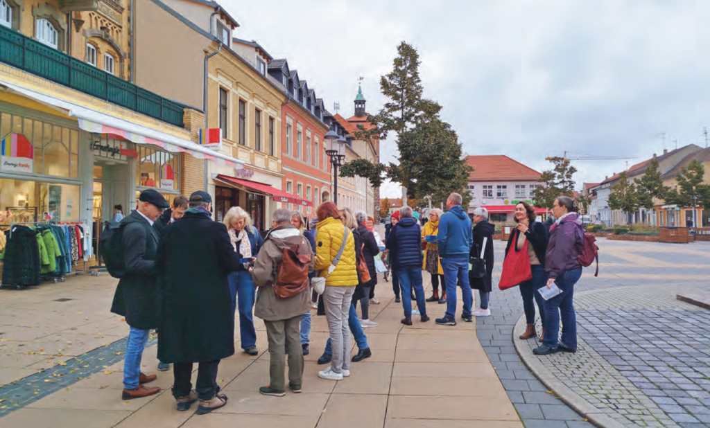 Diese Frage stellte sich im Sommer auch Friederike Bliss vom Förderverein Akademie 2. Lebenshälfte im Land Brandenburg e.V. Als sie sich bei uns meldete und fragte, ob wir von Gegen Vergessen – Für Demokratie e.V. uns vorstellen könnten, in der Kreisstadt Luckenwalde eine Wertewanderung zu begleiten, sagten wir sofort zu. Wertewanderung – schon das Wort strahlte Energie aus. Dahinter steckte das Anliegen, den Menschen in der Stadt einmal etwas anderes zu bieten als klassische Bildungsformate in Seminarräumen. Die Idee war, dass ganz unterschiedliche Menschen aus Luckenwalde und Umgebung beim Spaziergang durch die Stadt darüber diskutieren, welche Werte ihnen für das Zusammenleben wichtig sind. Ein Ziel war es, sich auf diese Weise mit den Perspektiven der anderen Teilnehmenden auseinanderzusetzen. Veranstalter waren neben der Akademie 2. Lebenshälfte die Evangelische Erwachsenenbildung, die Stadt Luckenwalde und die Volkshochschule des Landkreises Teltow-Fläming.